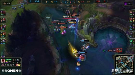 虽然送出了一血,但妖姬还是早早开始游走,TES在上路原本与JDG是一波上野2v2,塞拉斯被先行秒杀,但妖姬的到来改变了战局,奥恩和盲僧都被击杀。下路2v2泰坦出现严重失误,导致自己和女枪被JDG下路双杀。TES被打出1换4,前期局势变得恶劣了起来。