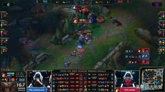 TES的龙魂小龙刷新后,双方在河道不断拉扯,互相交换人头,最后JDG抓到冰女的一波过度激进,拿到了这条小龙,打断了TES的节奏,并且击杀女枪后拿下第二条大龙,彻底巩固了己方的胜势。