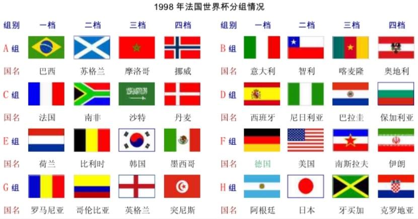 图1 98世界杯分组情况