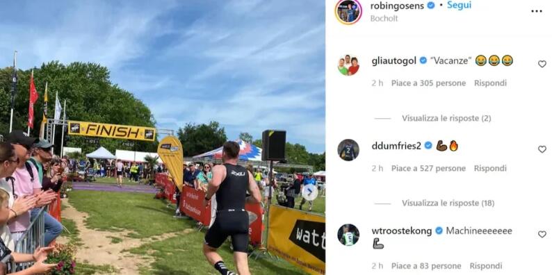对于国米左翼卫戈森斯来说,假期是完全不存在的,他并没有像很多球员一样前往海滩度假,而是投身于一项游泳、骑行和跑步相结合的运动,那就是铁人三项比赛。