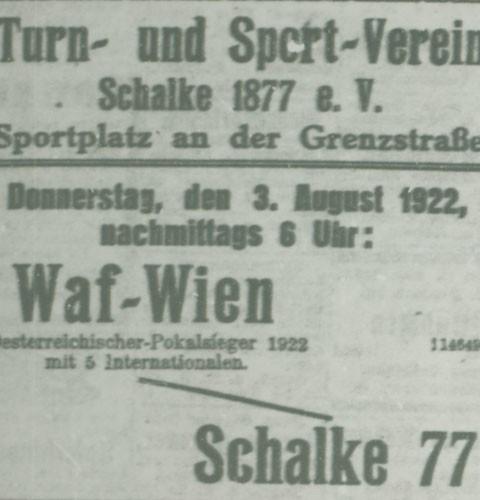 1920年,TuS 77成功升入西德意志联赛鲁尔高斯(Ruhrgaus)的二级联赛。1922年,俱乐部遗憾未能升入一级联赛。由于WSV实行联赛大改革,为了禁止赛事运营的“过度激烈化”:两个赛季(1922/1924和1924/1926)联赛不设升降级制度。因此,接下来的四年,沙尔克04都留在二级联赛。