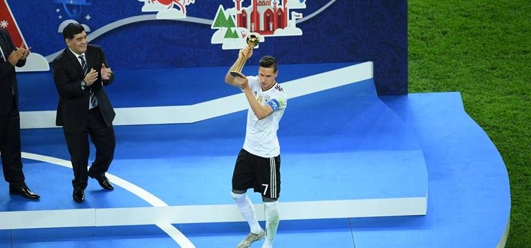 小德作为队长,为德国队出场5次,踢了431分钟,完成1球1助攻,最终拿下金球奖。智利球星桑切斯获得银球奖,铜球奖授予德国队的格雷茨卡。
