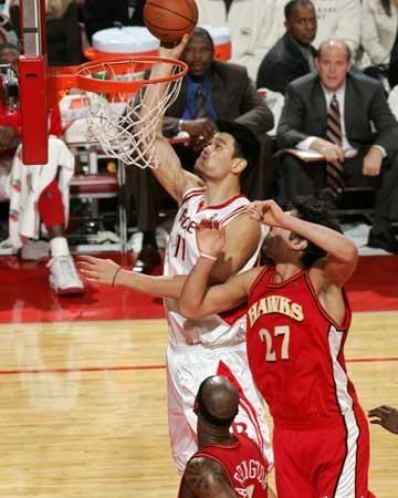 这是一场实力悬殊的较量,姚明的火箭队那个赛季一直都在季后赛大门里面转悠,而老鹰队即便在实力稍弱的东部也只是垫底的球队。