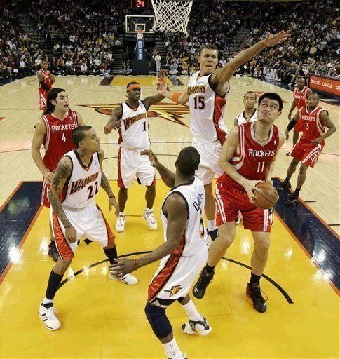 08年1月面对勇士,姚明的表现让勇士主教练只能坐在场下无奈摇头。勇士羸弱的内线拿大姚毫无办法,只能眼看着姚明进球或者搏得罚球,整场比赛,大姚拿到了19次出手命中了11个,15次罚球命中了14个,全场狂砍36分19篮板!是火箭四分险胜勇士的第一功臣,而这场比赛更大的意义在于,在之后的21场比赛中,火箭一场未输,创造了22连胜的神话!