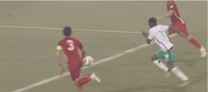 第76分钟,穆瓦拉德门前打空门得手,沙特队犯规在先进球被吹。