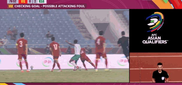 第76分钟,法赫德-穆瓦拉德接队友横传打空门得手,但越南队投诉攻方犯规。随后主裁判亲自去场边观看视频回放,最终判定进球无效。