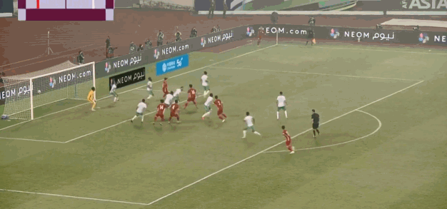 第4分钟,沙特快速反击边路传中,谢赫里抢点顶偏错失绝佳机会。