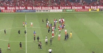 或许是因为上演了惊天逆转,浦和红钻的球员在比赛结束后十分兴奋,甚至开始了现场庆祝,而这个举动也刺激到了现场的济州联队球员,不知道因为什么原因,双方替补席开始了小摩擦,而浦和球员阿部勇树更是被对方替补队员飞奔肘击。尽管双方教练组以及现场工作人员一再干涉,但场面依旧变得越来越火爆,甚至出现了多名济州联队球员追打浦和球员的场面,最终负责维持赛场秩序的安保人员不得不进场控制局面。