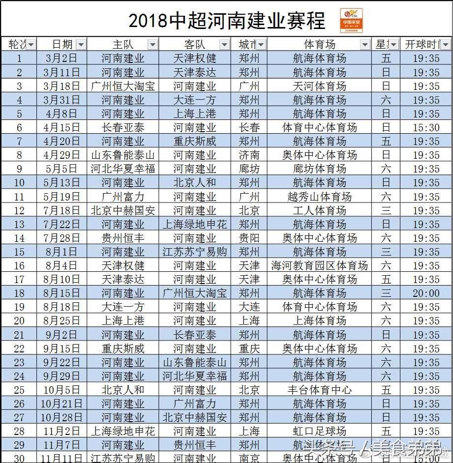 近日,中国足协下发了最新的中超联赛赛程,与最初的版本相对照,最终赛程有3场比赛的时间做了调整。第13轮天津天海VS河南建业的比赛,由原来的15:30调整为19:35,第14轮河南建业VS深圳佳兆业的比赛,由原来的15:30调整为19:35,第23轮河南建业VS北京人和的比赛,由原来的17:30调整为18:00,球迷朋友们可收藏此最新版本赛程表。(此次赛程调整只是在当日开赛时间上做了微调,已经在建业台历上贴过对战标签的不受影响。)