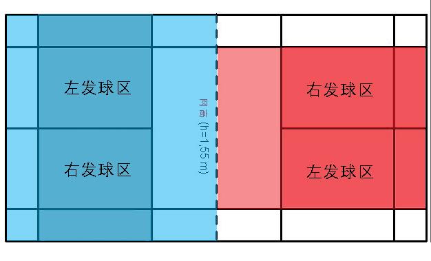 虽然在图1中我们说了单双打的发球区域,但在实际发球时,只能发到其中的一半区域内,或是左半区,或是右半区。压线算界内,如果不在对应的半区内,视为发球违例,对方得分。