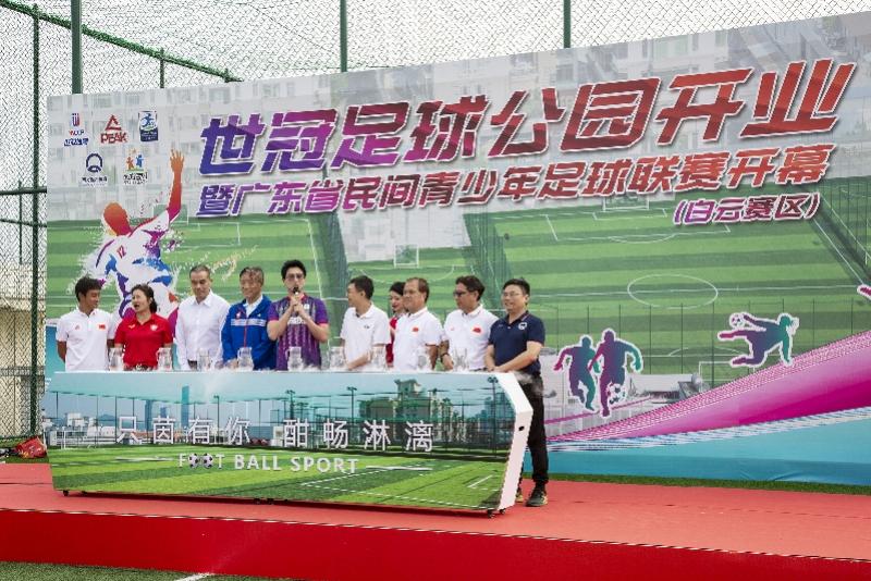 广东南方起跑友谊大使洪天明,中国足协原副主席、省体育局原局长董良田,广东省足球协会副主席、广东足球名宿陈玉良,广东省五人足球协会会长、粤超公司董事长刘孝五,前女足国脚、广东足球名宿张桂莲,百信集团副总裁庄志坚,广东省商业地产投资协会会长黄文杰,中国五人制国家队队员,现中国足协五人制讲师关智超,广东世冠体育科技有限公司总经理占冠世等领导和来宾出席本次开业典礼。