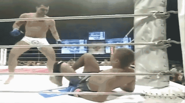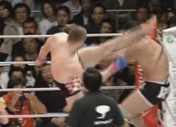 当时的PRIDE,堪称世界上规则最为开放的MMA比赛,足球踢、踩踏技术比比皆是!而将军在比赛中非常善于施展踩踏技术对对手造成重创,这也成为了他在PRIDE比赛中的招牌技巧,人称“飞踩将军”!