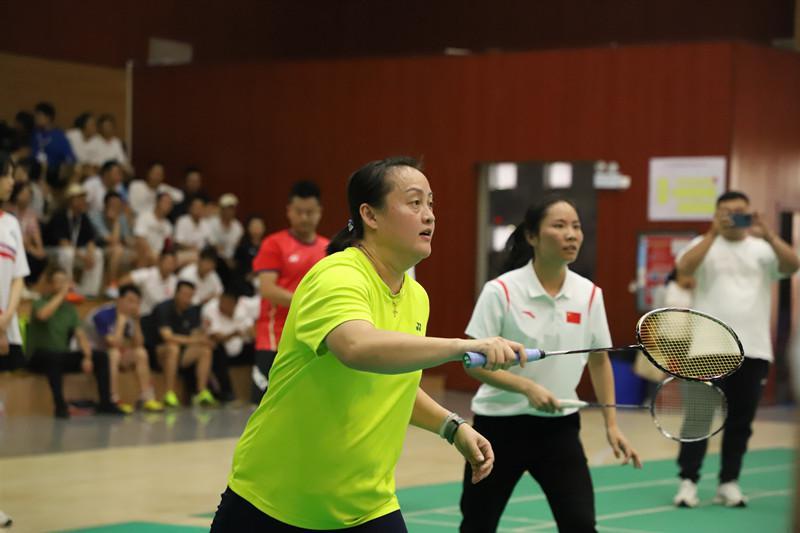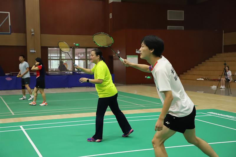 比赛都是双打赛制,龚智超无论是搭档学校老师还是学生,都认真对待每一次击球。每场比赛也都亮点纷呈,对抗精彩激烈。