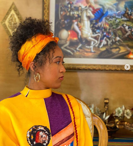 这张照片拍摄于美网夺冠之后,大坂直美穿着一件华丽的橙色、缩短版的海地传统服装,这些元素来自于她海地裔的父亲,而偏黄的肤色和亚洲轮廓的五官则来自于日本母亲的遗传。