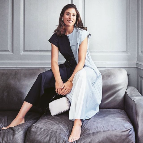 深色和浅色对比鲜明的连衣裙,配上英国莱德利(Radley London)小包,英国网球一姐显得优雅范十足。
