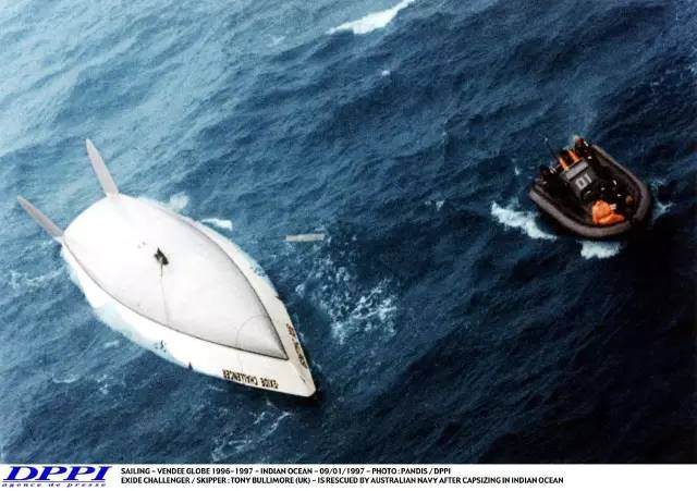 接着,两个求救信号也被触发:蒂埃里·迪布瓦在多山的印度洋海域遭遇逆境:船体倾覆、船桅折断、船底朝天。1997年的第二天,托尼·布利莫尔船的龙骨没了,船体倒扣……这两艘帆船彼此相隔不远但它们与澳大利亚的距离却超过了2500公里。三天后,澳大利亚海军救起了救生筏上的迪布瓦和困在倾覆船体内的布利莫尔。其他遇险选手均获救,可盖里·洛夫斯却杳无音讯……