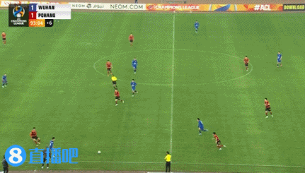 武汉三镇后卫姜至鹏与浦项制铁前锋朴炯愚对抗