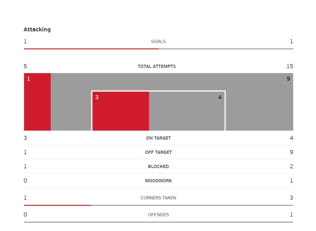 越位:1-0