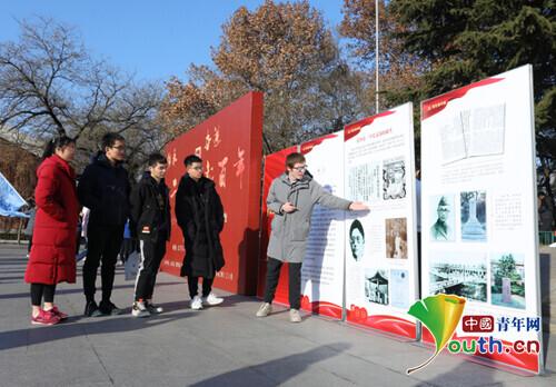 今年接力长跑现场还设置有专题展览,展示党史光辉历程和党史优秀人物,活动开始前,运动员们早早来到大礼堂前参观专题展览,详细的叙述和精美的制作也引得游人不断驻足。