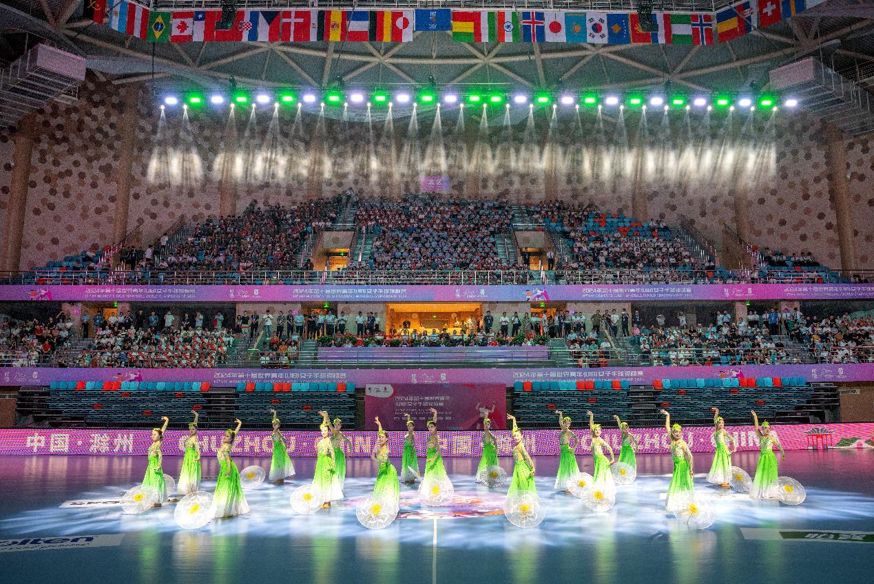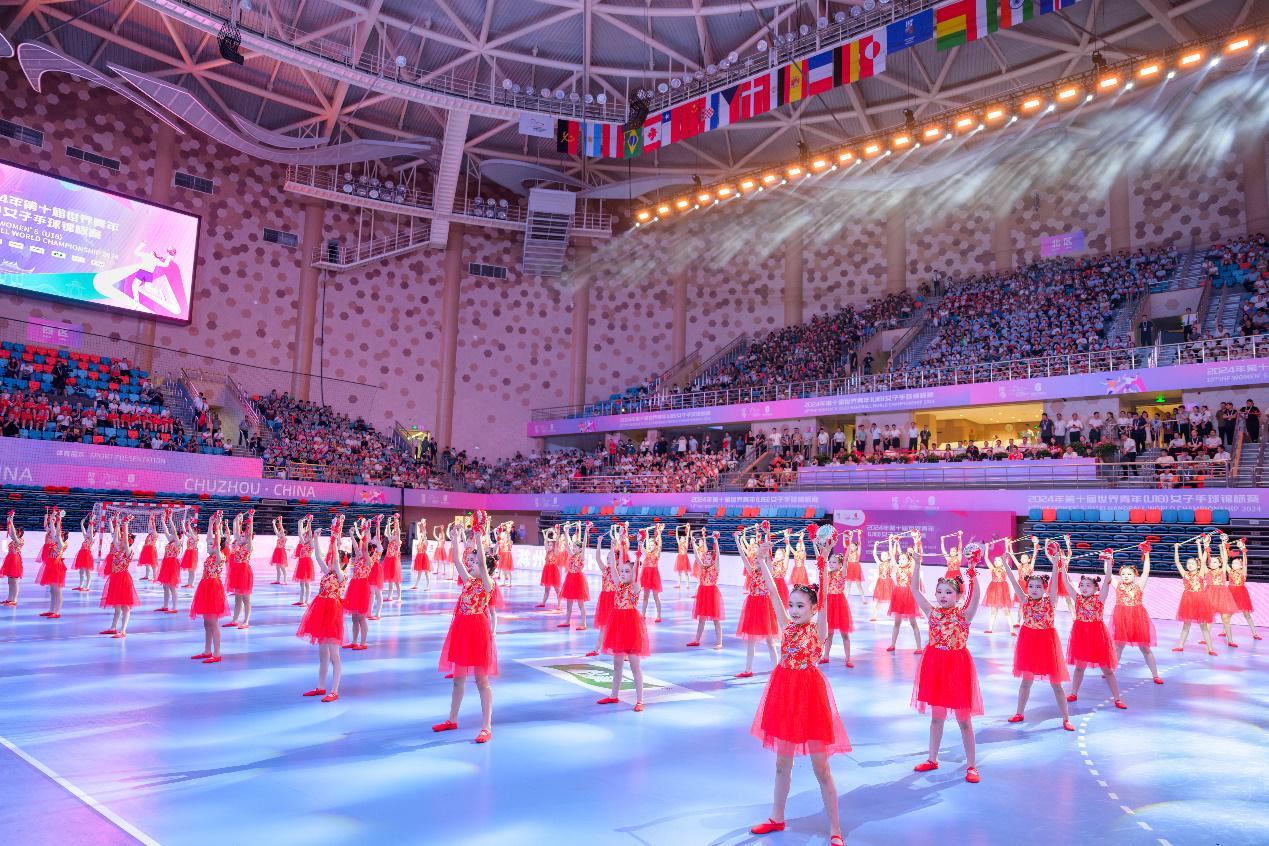 8月14日,2024年第十届世界青年(U18)女子手球锦标赛开幕式在滁州市国际手球馆举行。毕鸿 丁婉毓/摄