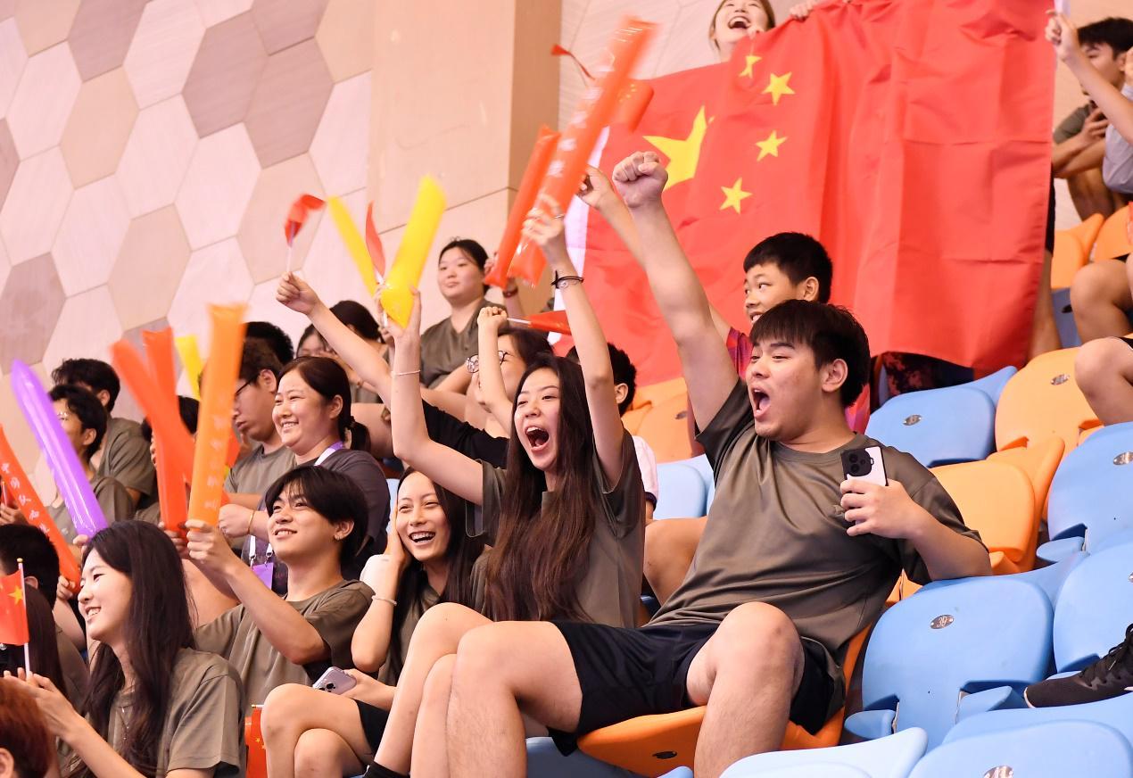 中国队对战格陵兰队比赛现场,看台上的观众热情高涨,为比赛双方加油。毕鸿 丁婉毓/摄