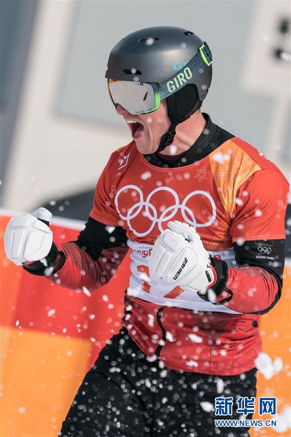 ↑2月24日,瑞士选手奈文·格马利尼在比赛后庆祝。新华社记者吴壮摄