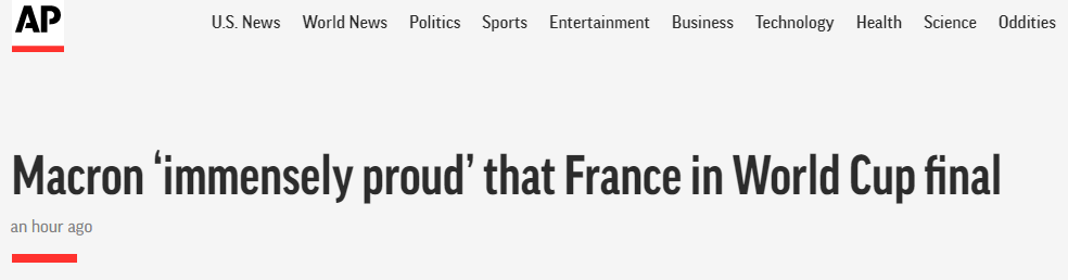“我为我的国家感到自豪,我非常高兴,”马克龙在赛后对记者说,“我希望法国人都能享受这种简单的幸福。”