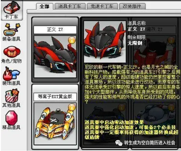 除了这些经典车,跑跑卡丁车当然也推出过很多性能不输经典品牌的赛车,例如当初几乎人手一辆的游侠Z7。
