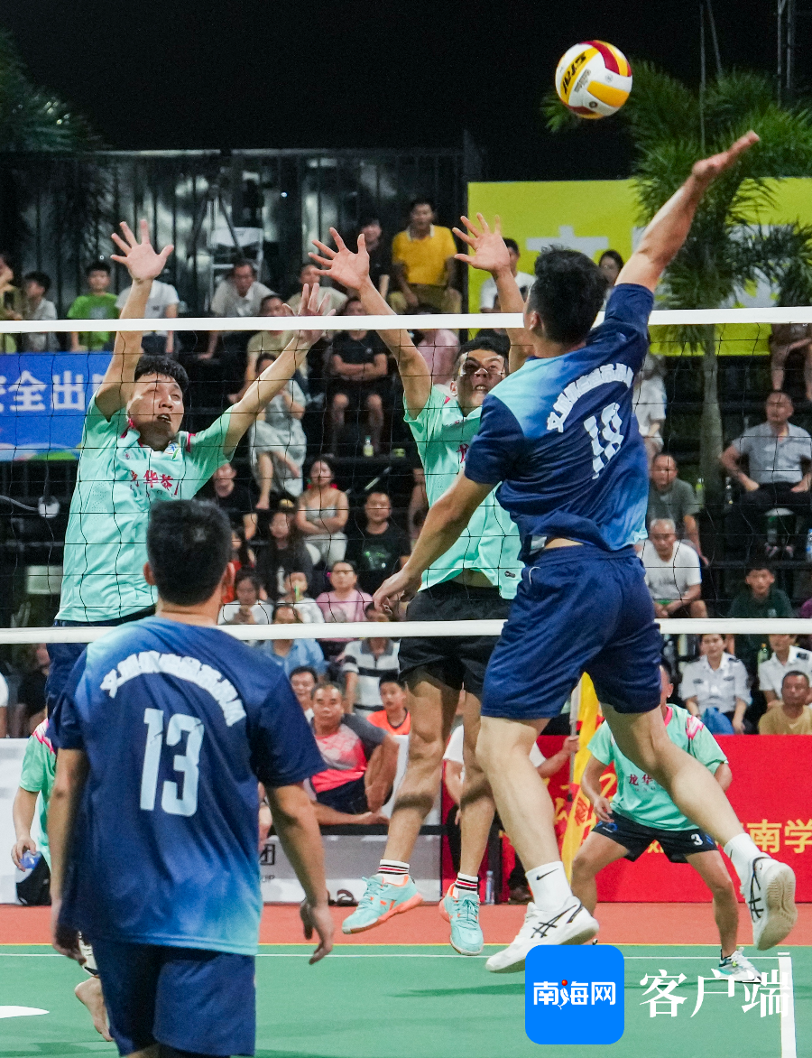 6月16日晚,2024年“九九杯”海南(文昌)乡镇排球联赛C组比赛在文昌玉阳公园进行。记者 李昊 摄
