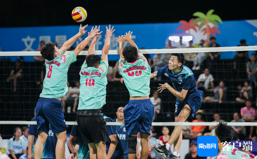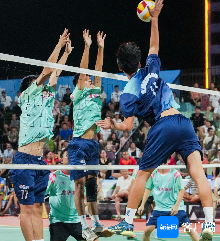 南海网6月17日消息(记者 李昊)6月16日晚,2024年“九九杯”海南(文昌)乡镇排球联赛C组比赛在文昌玉阳公园进行。第三场比赛由文城镇老爸茶战队对阵和乐镇龙舟小镇队,双方鏖战五局,最终文城队3:2险胜和乐队。