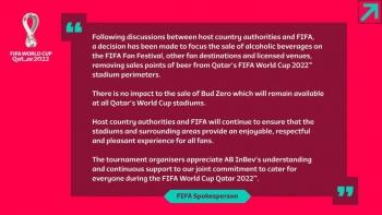 国际足联声明指出,百威无酒精啤酒Bud Zero的销售不受影响,将继续在世界杯场馆中提供。国际足联表示:“赛事组织者感谢官方啤酒赞助品牌百威英博对我们在卡塔尔世界杯期间满足所有人需求的共同承诺的理解和持续支持。”