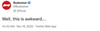 不过,百威稍早在其官方推特上发推称:“呃,这很尴尬…… ”但随后又删除了该条推特。