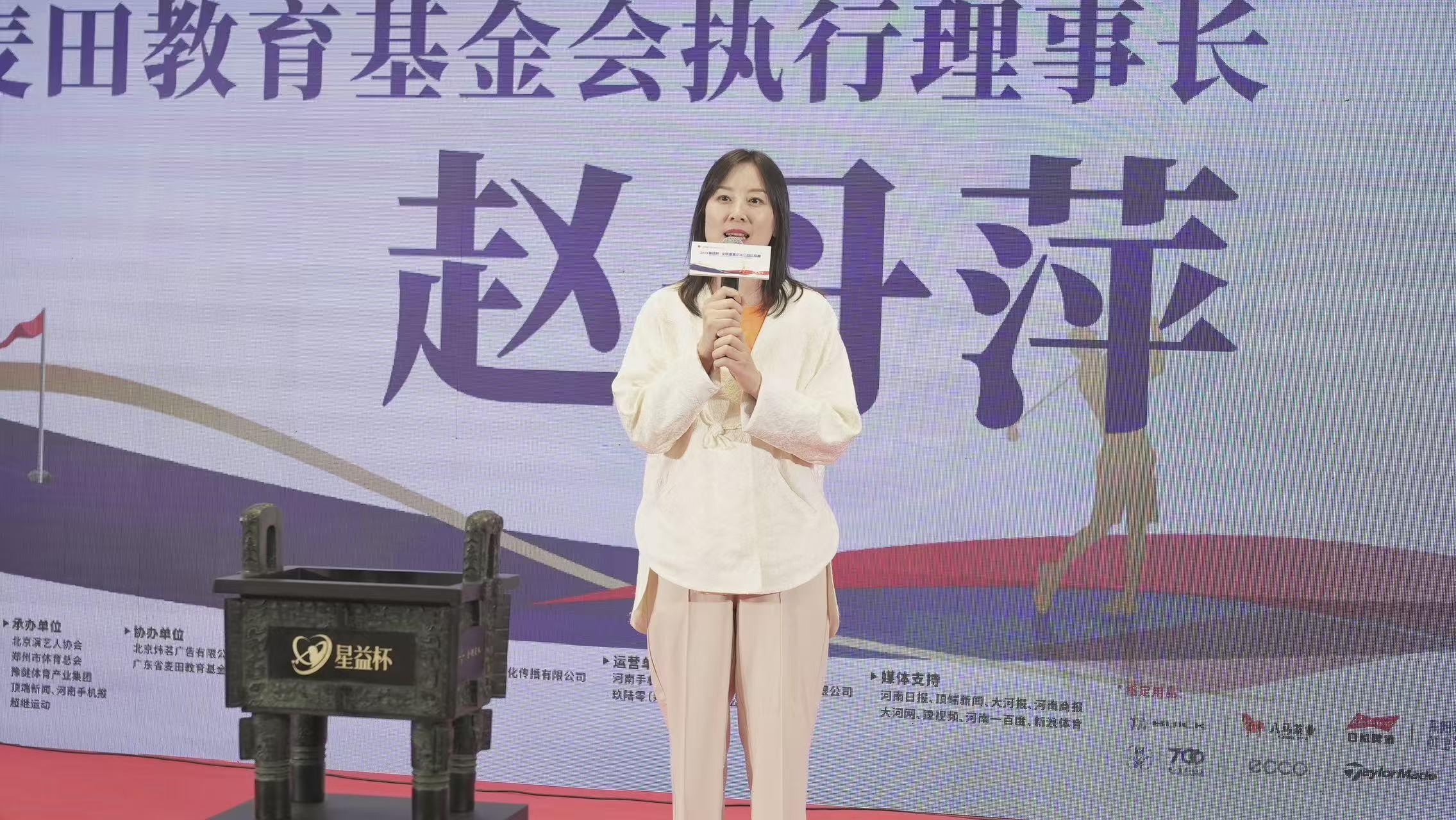 颁奖仪式上,麦田教育基金会执行理事长赵丹萍在致辞中表示,高尔夫不仅仅是一项体育运动,更是爱心传递的载体。河南高尔夫公益队在赛事前期为乡村小学捐赠科创教育项目,惠及广大乡村学子,帮助更多孩子成长,希望全明星高尔夫公益队际赛能够持续不断地举办下去,让本次公益赛事和高尔夫运动在中原大地蓬勃发展。超继运动总裁王健、北京演艺人协会全明星高尔夫球队队长赵晓时表示,希望“星益杯”赛事扎根中原。