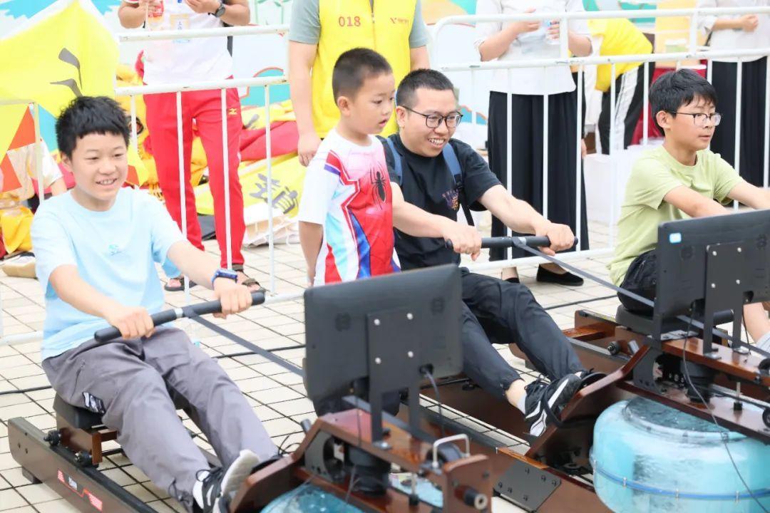 除了龙舟赛,活动现场还专门设置了商贸活动展示区,将捏面人、做糖画、吹糖人等传统手工技艺及特色糕点进行展示和销售。此外,陆上活动区也是本次活动的亮点,有骑行比赛、粽子球比赛、投壶比赛等活动供市民体验。其中,“旱地龙舟赛”格外受欢迎,不少市民在陆地体验了一把“龙舟”的快乐,感受运动健身的乐趣。“今天特意赶来观看,龙舟赛很精彩,看完比赛又带孩子参加了一些传统的体育活动,最后还买了几袋粽子,可以说是满载而归。”市民赵女士告诉记者。