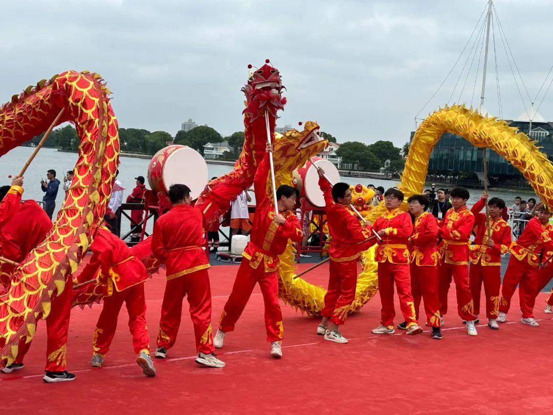 开幕式上,“拜水仪式”独具特色,声情并茂的表演将氛围感拉满。随后的舞龙舞狮也十分精彩,两条金色的巨龙在热闹的锣鼓声中欢腾起舞,时而翔跃飞腾,时而盘旋游走,栩栩如生。