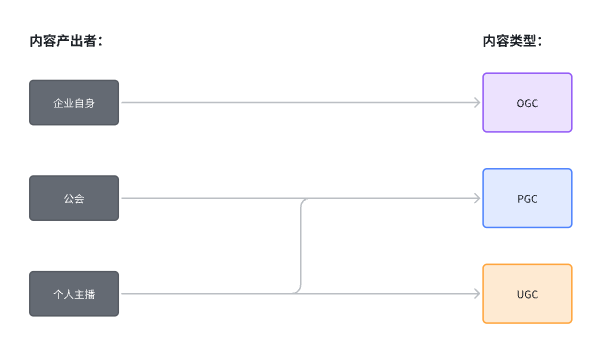 内容打造工作不仅仅是单个直播间的内容设计,而是一种面向某个品类内容的生态建设。其中需要通过运营手段给平台填充合适的OGC、PGC、UGC内容。
