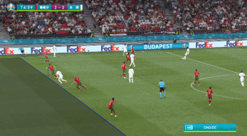 第84分钟,菲利克斯斜传球到禁区,后点C罗高高跃起头球攻门偏出,也吹了C罗压人犯规。第88分钟,卢卡斯带球推进前场过人后直传,拉比奥分球,马夏尔带球突入禁区连续摆脱后抽射,球被防守球员封堵。补时阶段,桑谢斯前场左侧直接一脚冷射,洛里把球抱住。随后葡萄牙继续进攻,特林康分球禁区左侧,C罗一脚劲射,洛里封住近角。↓