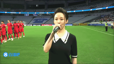 赛前著名台球手“九球天后”潘晓婷来到了现场,领唱国歌。