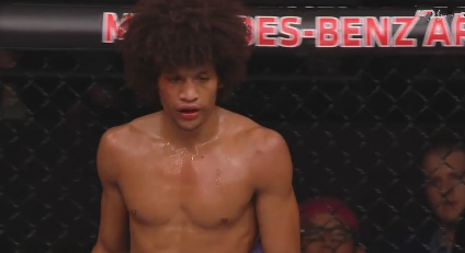 第二回合开始,美国选手艾利克斯士气不减,但是谨慎了不少,被王冠的飞膝吓的连连后退,之后两人就开始步伐移动,并未做出太多输出动作。第三回合美国选手“李小龙”艾利克斯示意王冠要不要碰拳,信心还是很足的样子。王冠后手拳击中美国选手艾利克斯一拳打开眼角,在比赛快要结束时美国选手艾利克斯再次击中王冠裆部,这已经是王冠被第三次踢裆。随后进入到比赛的王冠和美国选手艾利克斯并未做出太多动作,最终王冠点胜美国选手艾利克斯,获得比赛胜利。