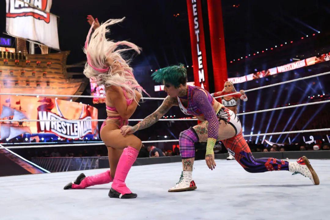 关注新闻的摔迷应该都知道,昨天《摔角狂热37》首夜上的那场10人女子车轮双打赛可以说是《摔角狂热大赛》历史上最糟糕的比赛之一了,比赛过程中意外频发,甚至还出现了女选手走光的情况。