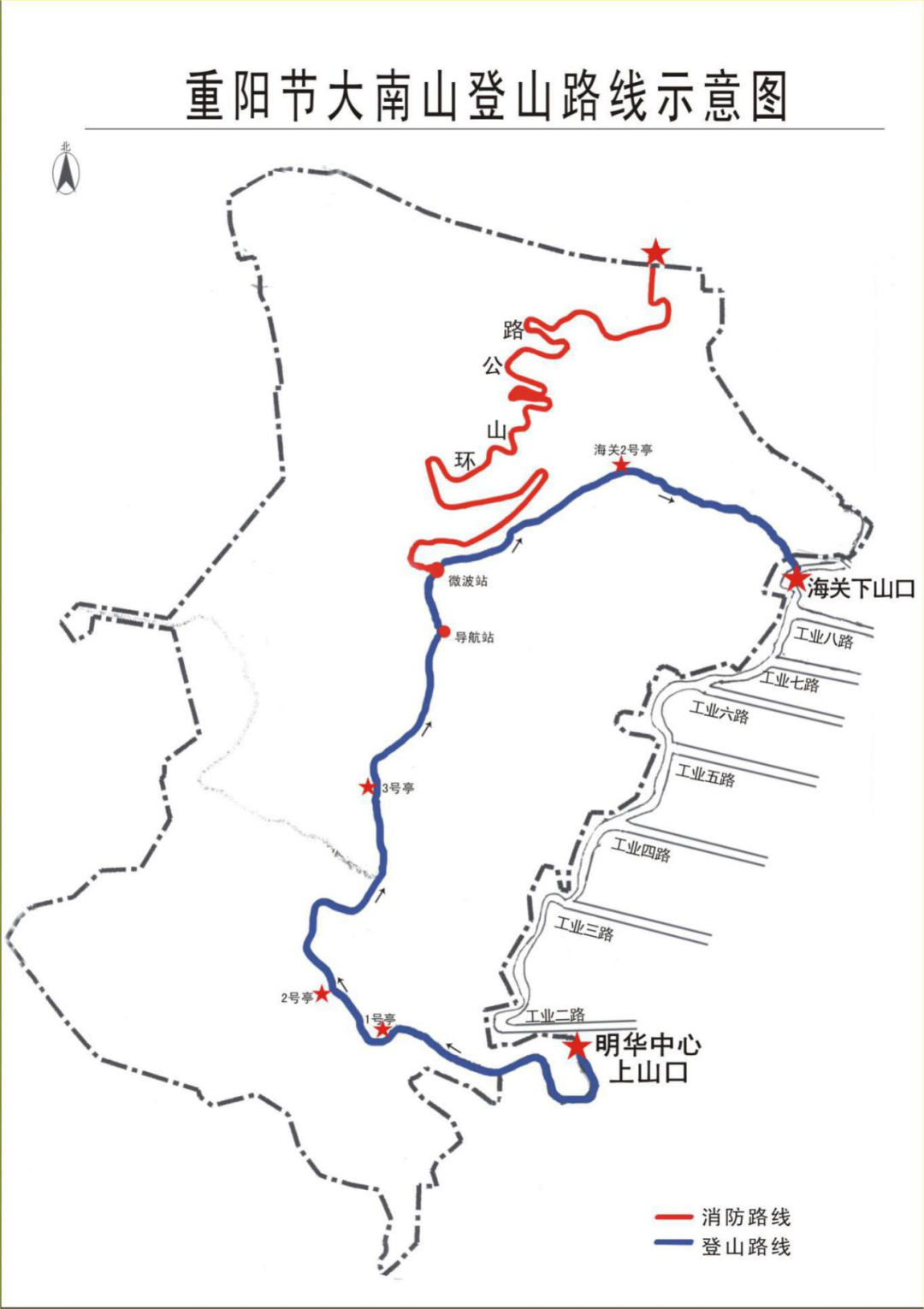 下方为重阳节大南山登山路线示意图