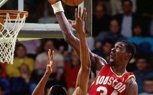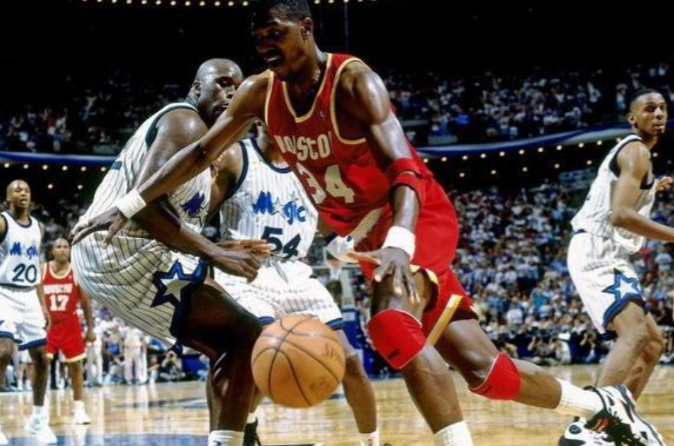 或者说,还是奥拉朱旺,当时二年级的奥拉朱旺场均已经能够拿下二十分,在新秀乔丹还在扣篮大赛上施展才华的时候,他就带领着火箭队冲上了总决赛,值得一提的是,那个赛季的贾巴尔正式的步入自己生涯的末期,在内线遇到桑普森和奥拉朱旺的包夹之后四轮下来他场均仅能拿到不过23分,以及场均被盖帽8个球的表现,内线的失守导致外线失火的湖人队在那年的西决意外的爆了冷。