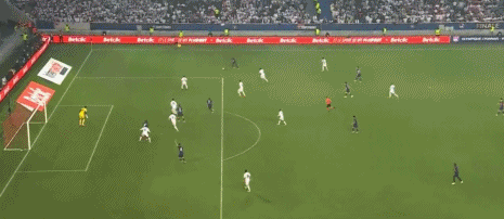 第41分钟,巴黎圣日耳曼发起反击,登贝莱前场右路起球传中,姆巴佩禁区线上不停球直接抽射打门高出横梁。第45分钟,登贝莱前场右路45度传中,法比安-鲁伊斯后点凌空垫射高出横梁。