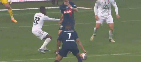 下半场补时4分钟。最终全场比赛结束,巴黎2-1里昂。