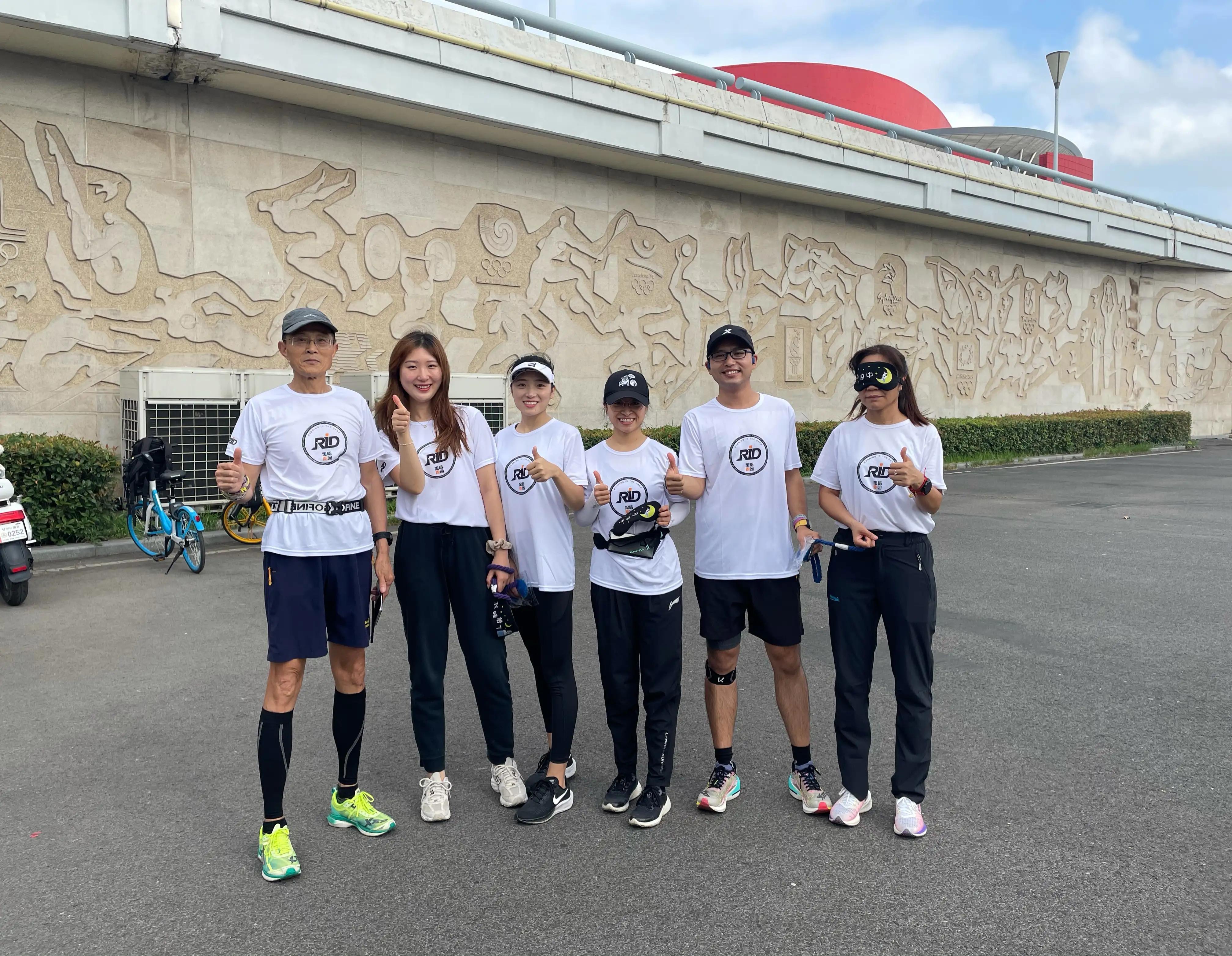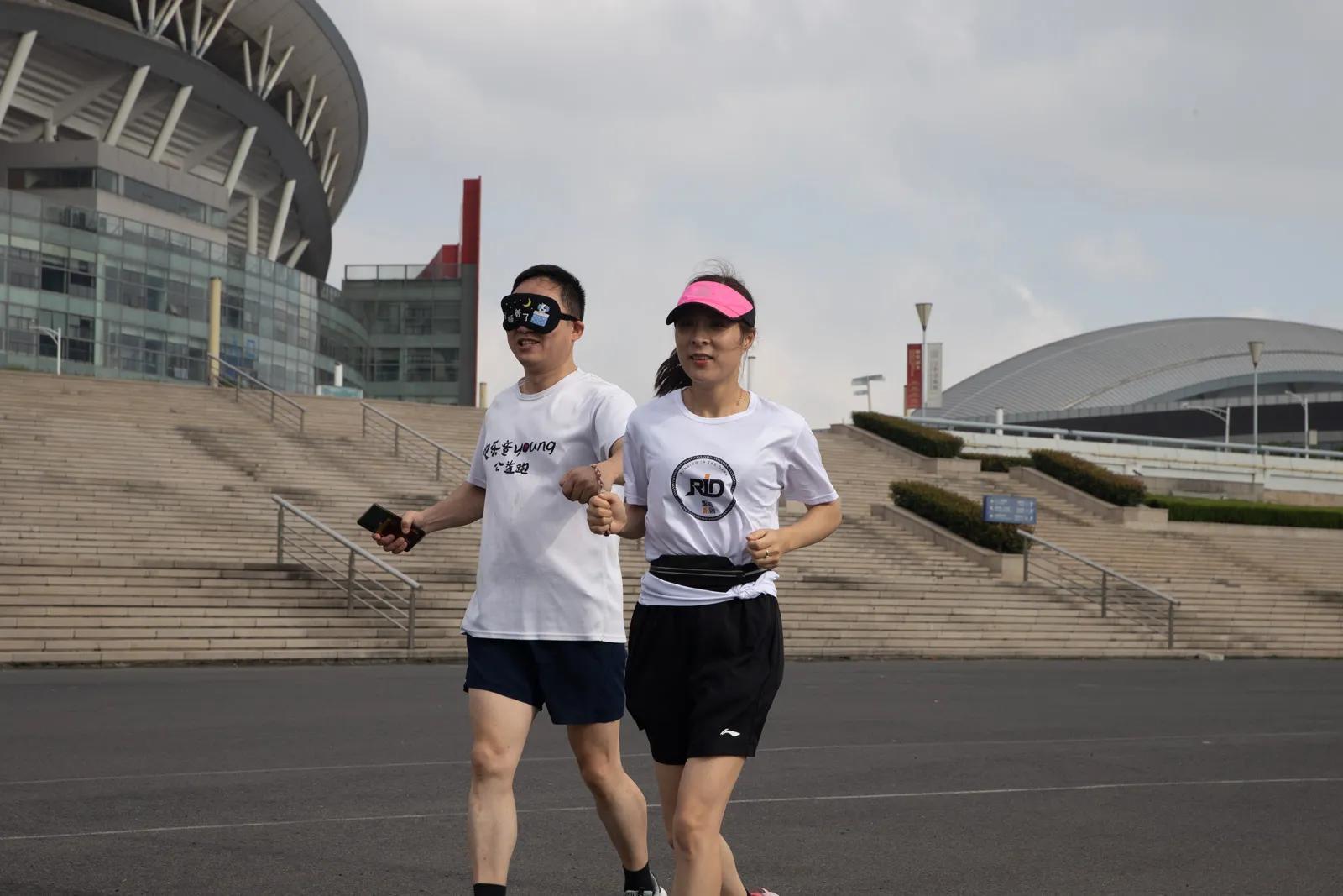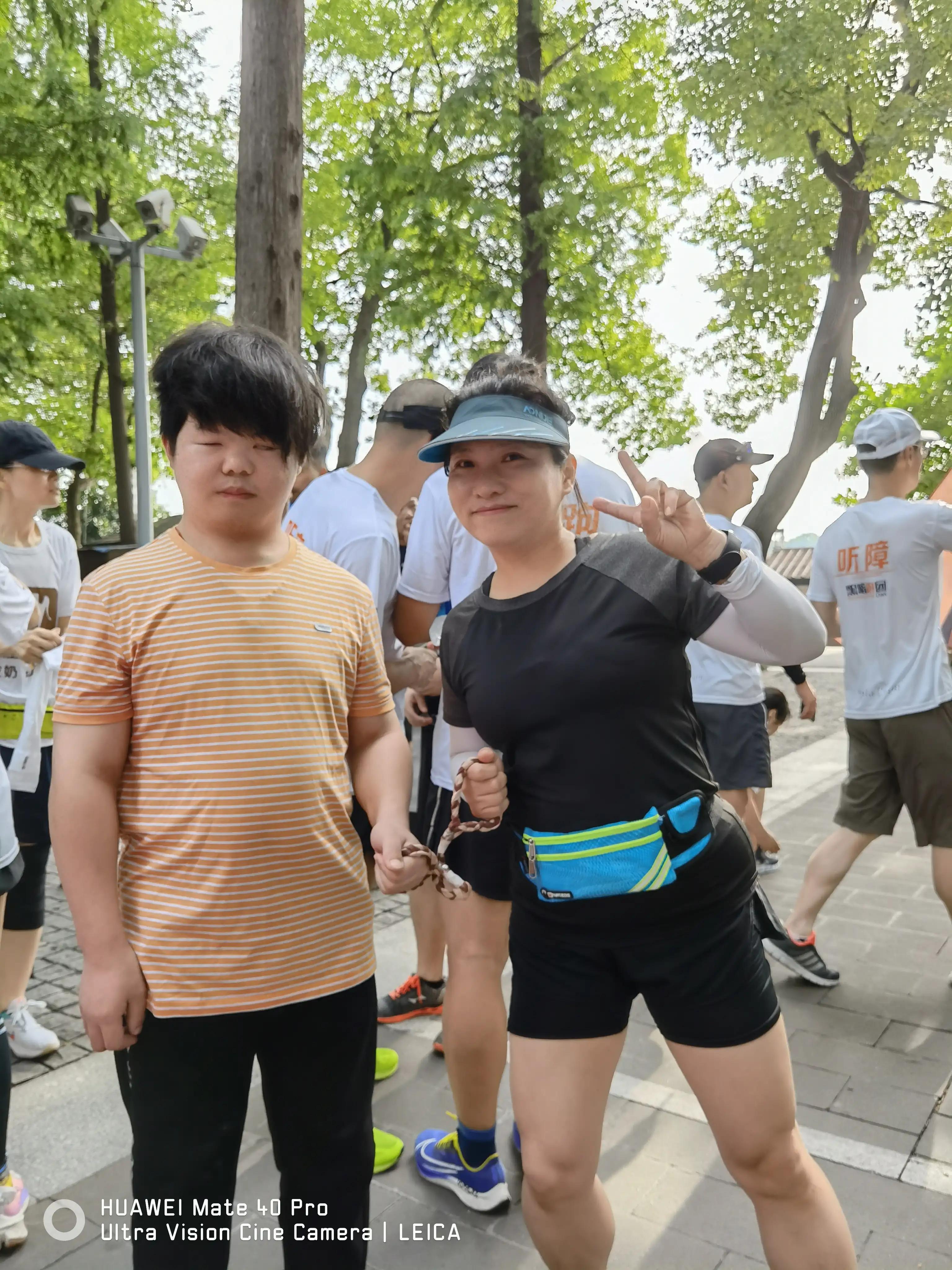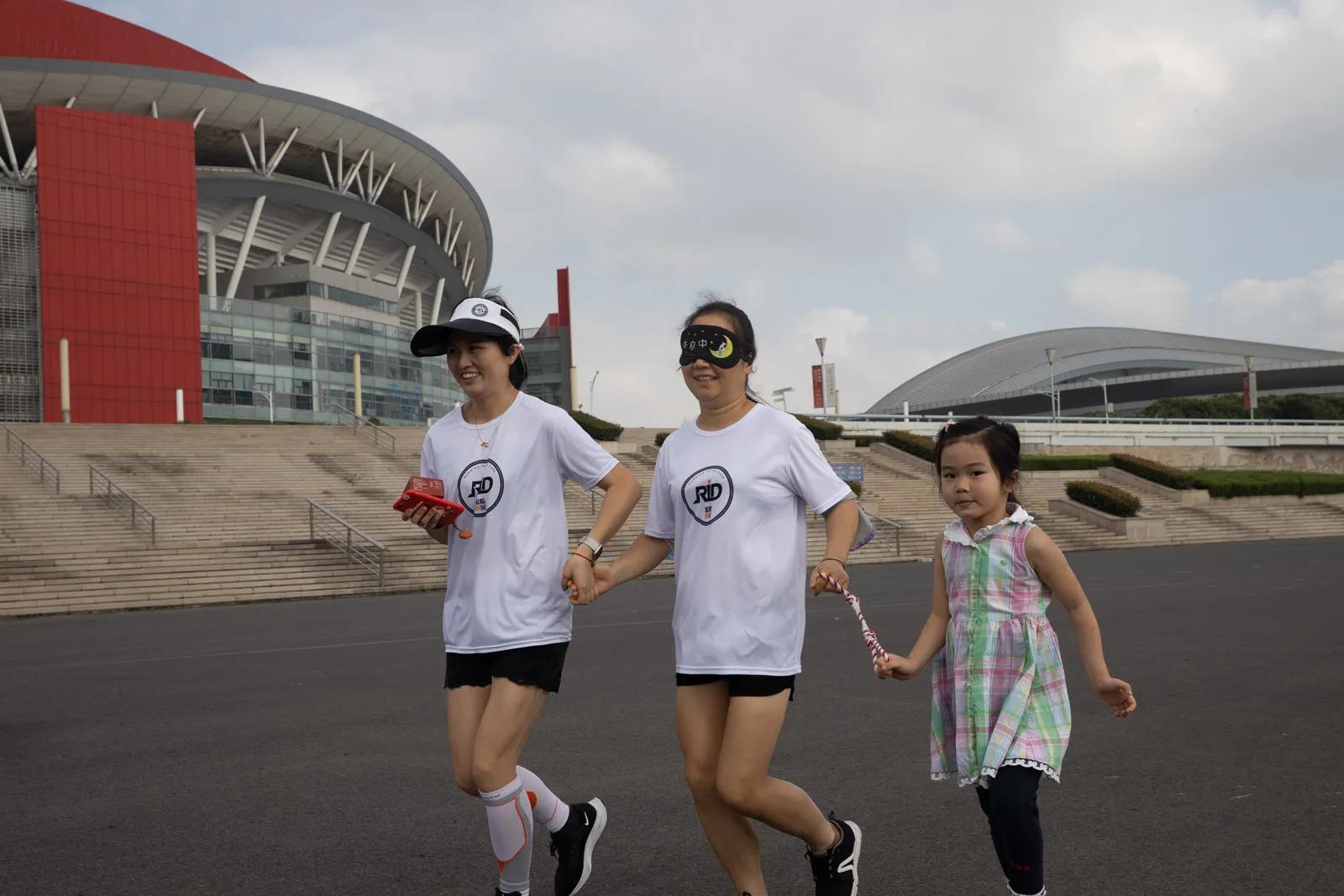 我短暂的体验了一下带上眼罩跑步。当时是我的搭档另一位女生先体验的,在我把牵引绳缠在她手上,给她带上眼罩时,她跟我说她很害怕她不敢跑。我很费解,因为按照之前了解的注意事项,牵引绳保持一个弯曲的弧度,我的右臂挨着她的左手,我也在旁边一直轻声告诉她前方的路况是安全无障碍的,我以为我已经在听觉和触觉给了她很大的安全感。但是她还是不敢迈腿。然后换我体验时,我才懂了那种感觉,带上眼罩的第一感觉是害怕,我的双脚就好像被束缚在了原地动弹不得。我担心会撞上左边的栏杆,会撞上右边的行人,担心我会撞上前方的车辆。我试着慢走了几步,我发现处于失明状态的自己根本无法行走,更别提奔跑。我急切的想要摘下眼罩,想要看清我前面的路到底是否平坦。当我摘下眼罩,看见太阳的时候,我突然想到,奔跑的视障患者他们是怎么一点点克服这种恐惧,在一片黑暗的环境里一点点的试着迈出腿,去拨开前面黑暗的路障,去完全相信带领自己的人。我相信他们比我们更害怕,更恐惧,他们又比我们想象的更勇敢,更优秀。