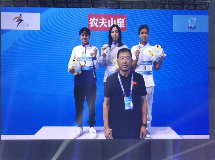 刘梦阳参加女子100米蛙泳颁奖仪式