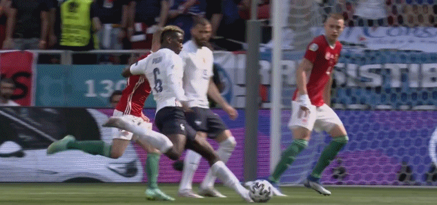 第38分钟,博格巴在边线位置被对手踩到脚面。第43分钟,匈牙利队打反击,罗兰-绍洛伊在前场左侧拿球,一脚传向禁区,球被队友菲欧拉挡出了底线。第45+2分钟,匈牙利队意外取得领先!右路长传到左路,两次头球传递后,菲欧拉拿球进入禁区左侧,一脚捅射洞穿了洛里把手的大门,匈牙利队1-0领先法国队。