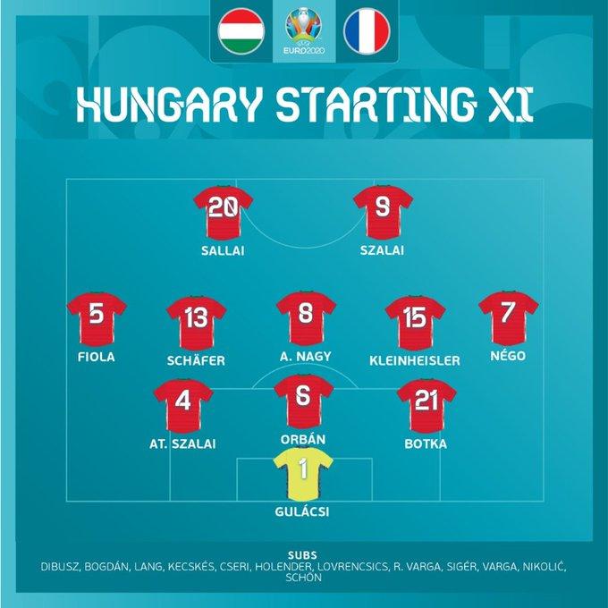 匈牙利首发:古拉奇、博特卡、奥尔班、威利·绍洛伊、内戈、纳吉、克莱因海斯勒、谢弗、菲奥拉、亚当·绍洛伊、罗兰·绍洛伊。