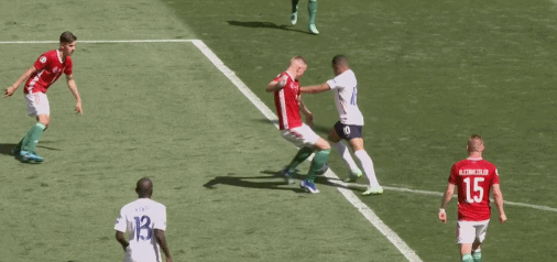 第23分钟,博格巴造了对方一个犯规,法国队获得禁区前的任意球。亚当-绍洛伊倒在地上,经过简单处理后无法坚持,被尼克利奇换下。姆巴佩主罚法国队的任意球,打中人墙里刚出场的尼克利奇后,皮球被弹出。