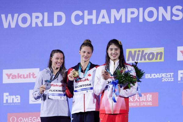东京奥运会女子200米蝶泳冠军张雨霏在本届世锦赛上已经摘得100米蝶泳铜牌。在布达佩斯多瑙河体育馆,女子200米蝶泳决赛是当晚首个竞逐项目。半决赛中以第五名晋级决赛的张雨霏在第二道出发,前100米一路领先,但后半程体力有所下降,最终以2分06秒32排名第三结束比赛。